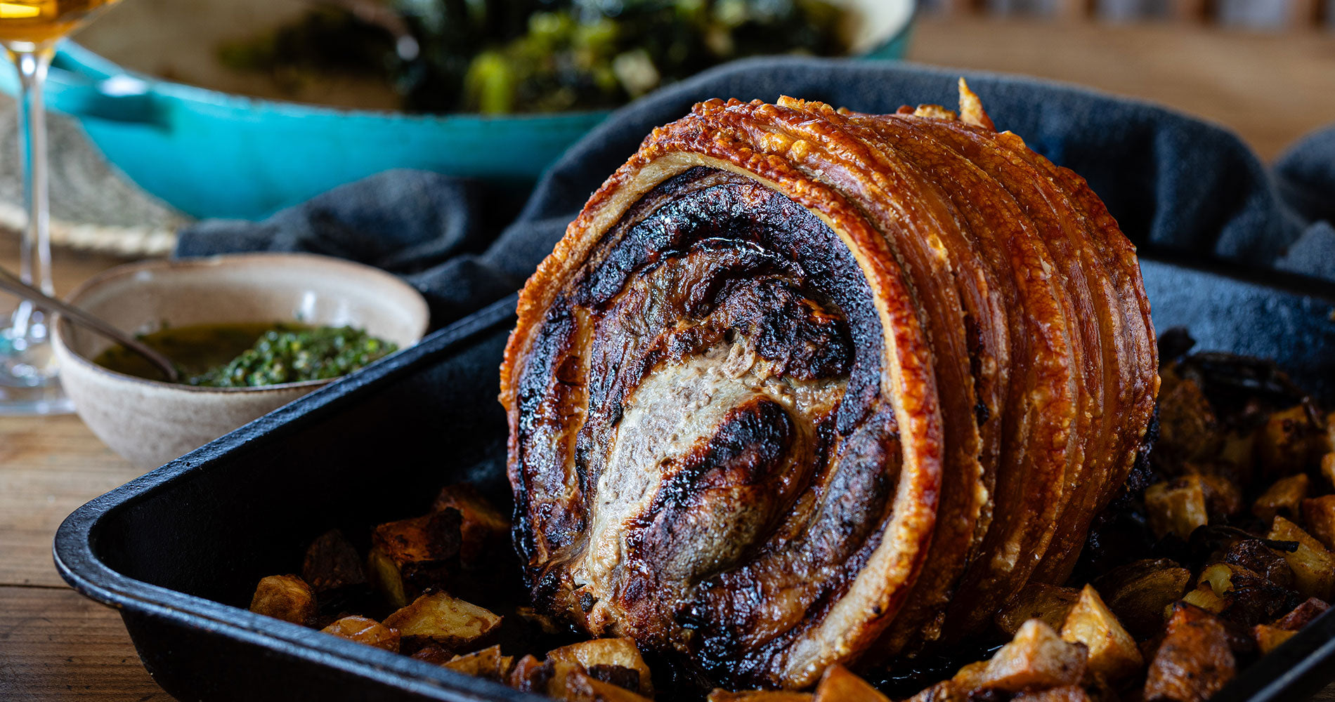 To kick things off, may we suggest a special for Easter weekend: our Wild Garlic Porchetta. Roasted in a tray surrounded by cubed potatoes, be sure to nail the crackling. A bowl of salsa verde feels essential, and for a true Roman finish, add a pan of vignarola or a big pot of greens cooked in the holy trinity of garlic, anchovy, and chilli. Buon appetito.
